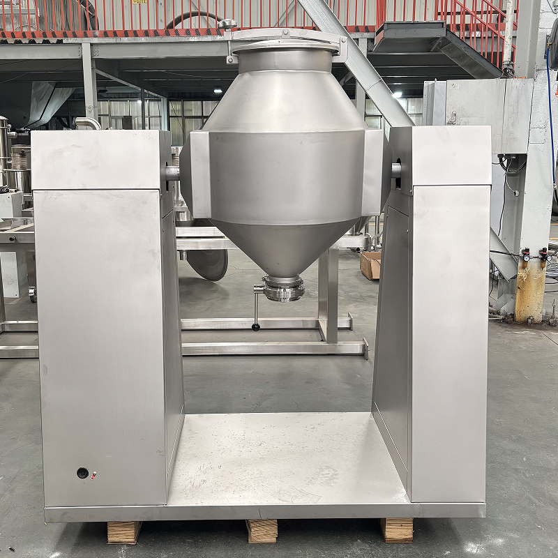 The double cone mixer is a highly efficient equipment commonly used for powder mixing. Its core structure is a double cone-shaped rotating cylinder. It features high mixing efficiency and no dead corners for stirring. Moreover, the overall structure of the equipment is sealed, which can effectively reduce dust pollution and ensure a clean production environment. This equipment has a wide range of applications and can be used in multiple industries such as pharmaceuticals, chemicals, and food. It is mainly suitable for granular and powdered materials, especially for production scenarios with high requirements for mixing uniformity.